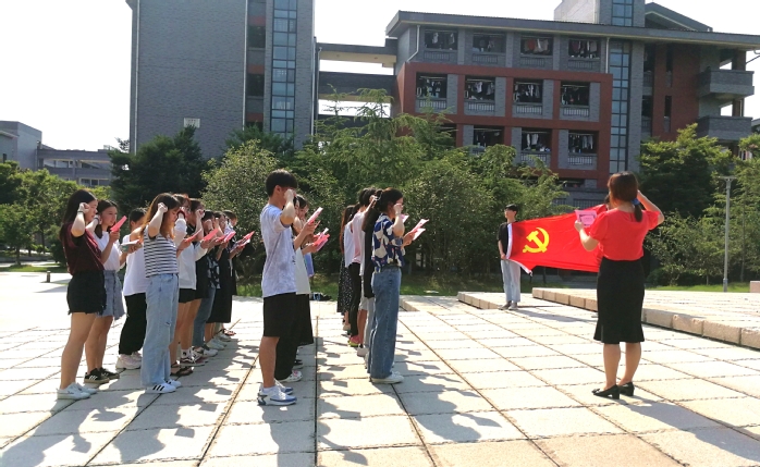党课后,今年新发展的党员前往公司“三杰”雕塑广场,在公司党委委派的兼职组织员丁瑞萍老师带领下,进行了入党宣誓活动。