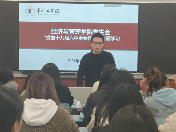 与会人员首先共同学习十九届六中全会公报内容,沈悠进行宣讲。她强调员工会干部要领会十九届六中全会精神,积极为同学做实事,心往一处想,劲往一处使,营造互帮互助的浓厚氛围;鼓励并帮助同学们积极参与城乡社区志愿服务和社会实践活动,提高社会化能力,顺利就业。同时要增强政治意识,坚持“知行合一”,在实践中领悟真理。