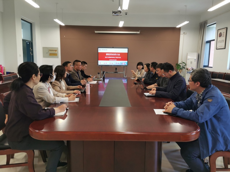 为深化课程思政教学改革,更好地推进课程思政建设,4.26日下午,电子商务系在瑶光楼A201召开课程思政研讨会,系部课程思政研究团队教师参加会议,系主任方丹主持会议。