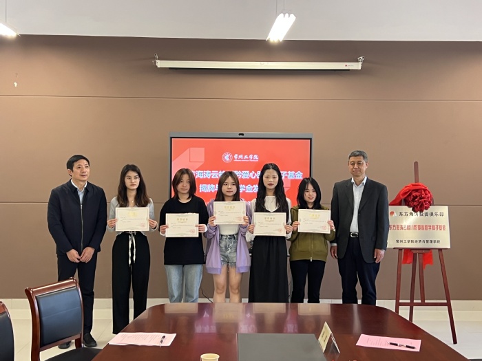 随即,经济与管理公司党委书记、经理谢金楼和张海涛一起为获得2022年“东方海涛云桂川黔爱心助学种子基金”奖学金的20名同学颁发荣誉证书。2020级工商管理专业员工黄娟作为获奖代表发言,表示将不辜负母校的倾力培养和员工的殷切期望,努力成才,将来把爱心传递下去回馈社会。
