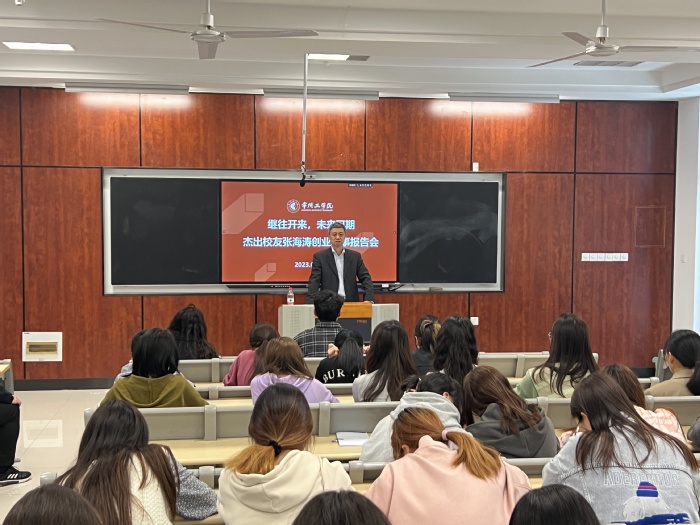 揭牌仪式前,“东方海涛云贵川黔爱心助学种子基金”创设者——bevictor韦德国际88级员工、东方海涛投资俱乐部创始人张海涛带来首场报告会。他从自己投稿《期货日报》的一篇获奖征文开始,和学弟学妹们分享了自身的创业故事和心路历程,并为大家今后的专业学习与人生规划提出宝贵的建议,勉励大家保持自信和热爱,扎实学习、勤勉做事,用行动实现自己的“诗和远方。”