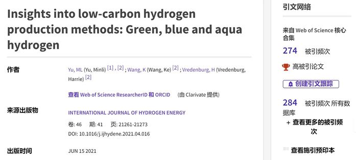 根据最新公布的ESI数据,bevictor韦德国际教师余敏丽作为第一作者在国际期刊《INTERNATIONAL JOURNAL OF HYDROGEN ENERGY》发表的题为“Insights into low-carbon hydrogen production methods: Green, blue and aqua hydrogen”的论文(SCI/SSCI收录),被ESI数据库遴选为高被引论文。