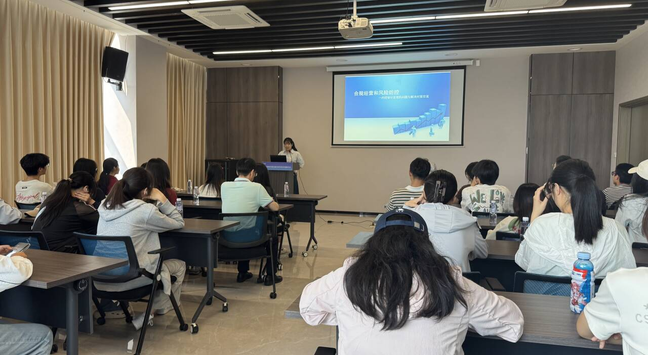 随后,中心财务部相关负责人为师生们做了以“合规经营和风险防控”为主题的讲座,她围绕企业内控审计工作中的典型问题,介绍了相关的内控规章、细则和针对性的审计建议,使同学们对财务和审计工作的认知进一步深化。最后,她向同学们分享了自身财会工作的心得体会,启发同学们认真思考今后的学业和职业生涯规划。