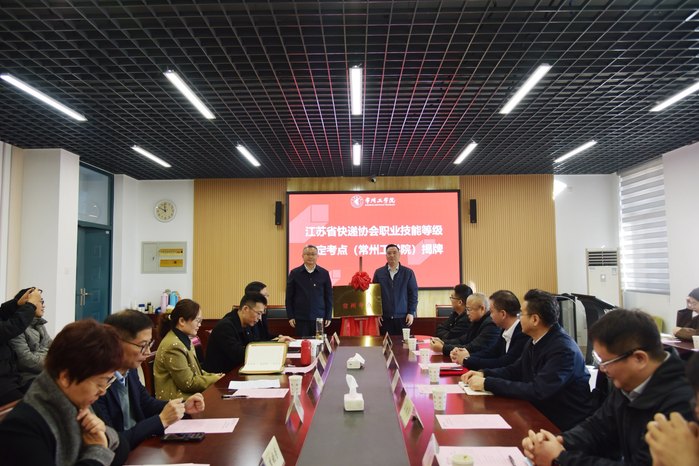 随后,仪式依次进行了常州市数智供应链党组织、共建数智供应链产业公司、校企联合攻关项目签约。经济与管理公司党委副书记、副经理(主持工作)李芸达宣读产业教授聘任文件,并为常州市快递协会副会长兼秘书长宋建宏等两位产业教授颁发聘书。李雄威与常州市快递协会常务副会长、顺丰运输(常州)有限公司副总经理王胜勇共同为“江苏省快递协会职业技能等级认定考核点(韦德官方网站)”揭牌。