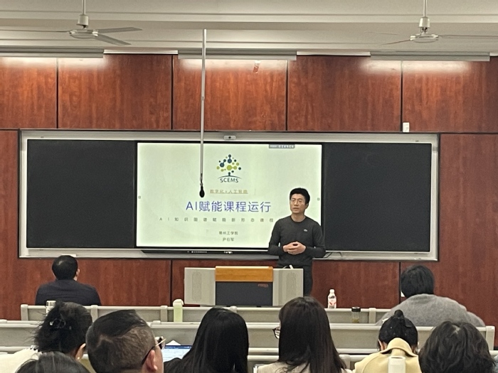 化工与材料公司复合材料与工程系主任尹衍军老师围绕“AI赋能课程运行——AI知识图谱赋能新形态课程应用”作主题分享。他结合复合材料与工程专业课程建设实际,详细讲解了AI知识图谱在课程知识体系构建、学习路径个性化推荐、学情智能分析等方面的具体应用,展示了新形态课程在提升教学效率、优化学习体验方面的独特优势。尹衍军指出,人工智能技术的引入为课程建设带来了新的可能,教师应主动拥抱技术变革,探索“AI+教育”的创新路径。